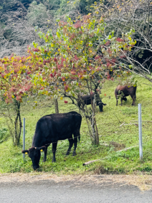 道路ギリギリに牛がいて