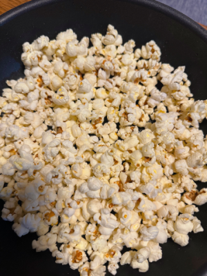 ポップコーン作って、ホットミルクと共に食べてました