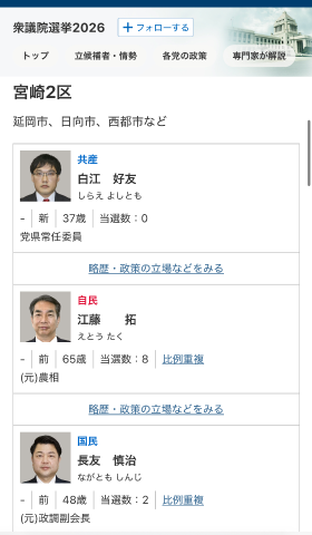 『略歴、政策の立場などをみる』をクリックすると