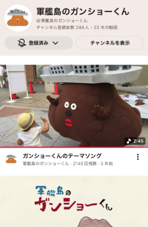 軍艦島のゆるキャラのガンショーくんで、YouTubeもしてるみたいです