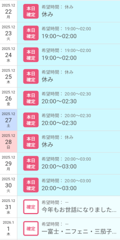 姫納め出勤スケジュール?