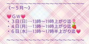 次回の出勤は5月3日(日)❤️