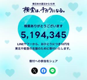 Yahooから検索するだけで寄付ができますので