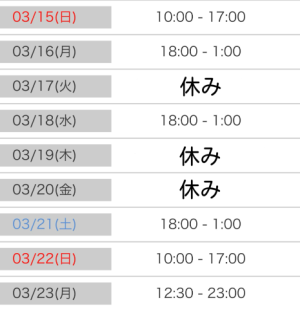 16(月)〜23(月)の出勤スケジュールも出してもらいましたので、