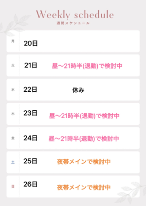 ? さ来週の出勤予定 ?
